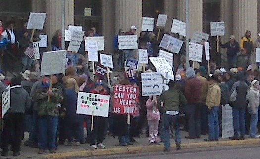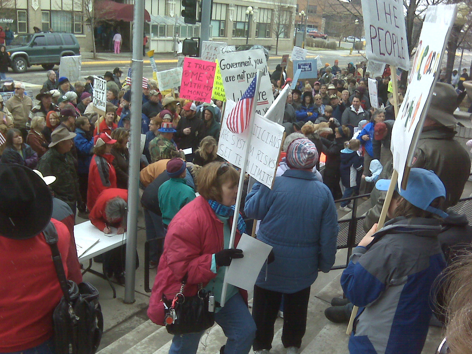 There was some snow and it was about 35 degrees, but that did not stop the estimated crowd of 350-400 people from showing up in Great Falls, Montana, for the Tax Day Tea Party.