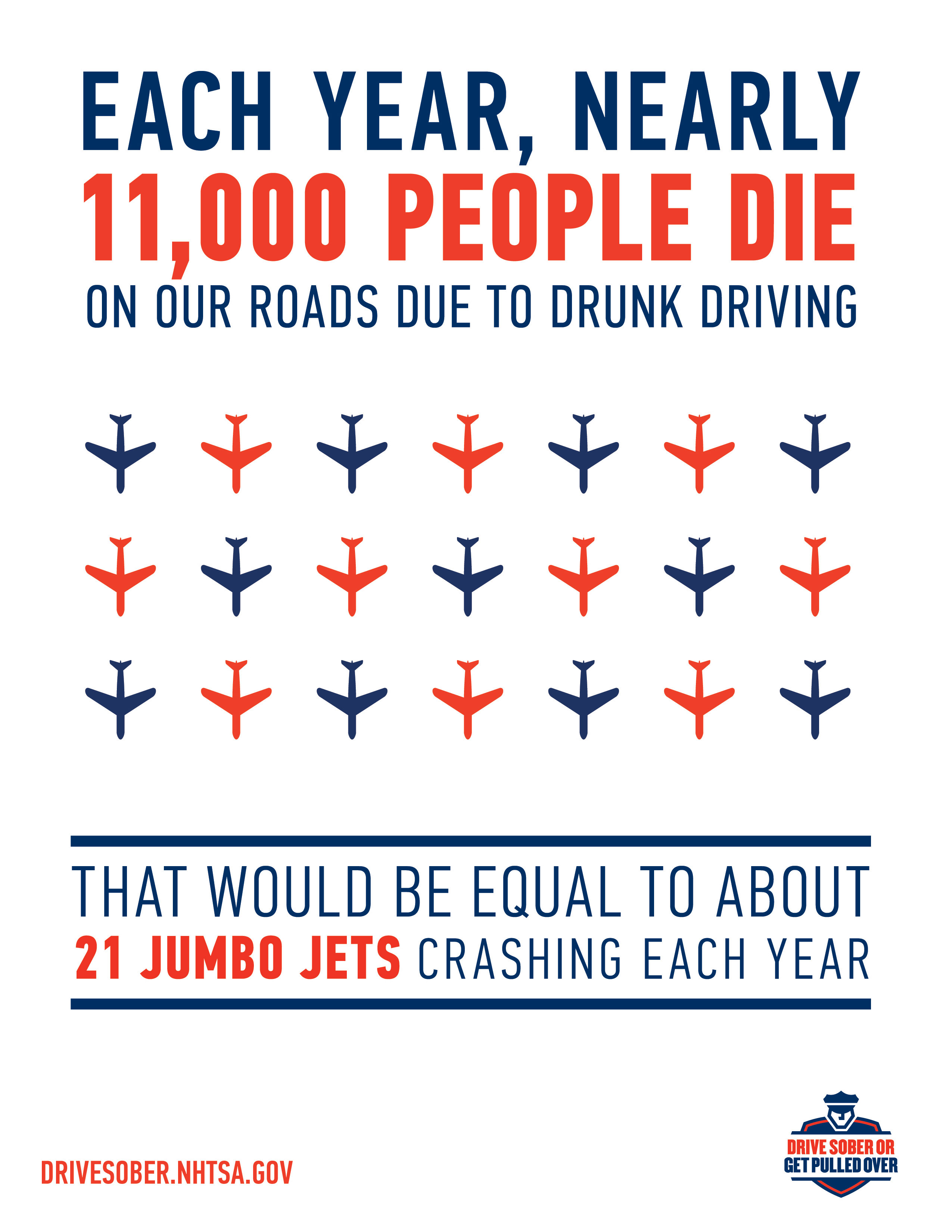 Each year on average, nearly 11,000 people die on the road due to drunk driving. Law enforcement in every state and most U.S. towns and cities will be cracking down on drunk driving from August 21 (this Friday) through Labor Day. (Source)