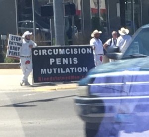 A group called the “Bloodstained Men” showed up to protest circumcisions. Yes, circumcisions. They are anti-circumcision.