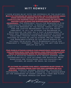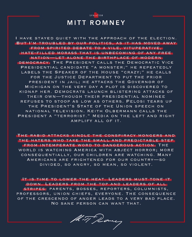 Former Presidential candidate and current U.S. Senator from Utah, Mitt Romney, tweeted a statement about the state of politics in the United States.