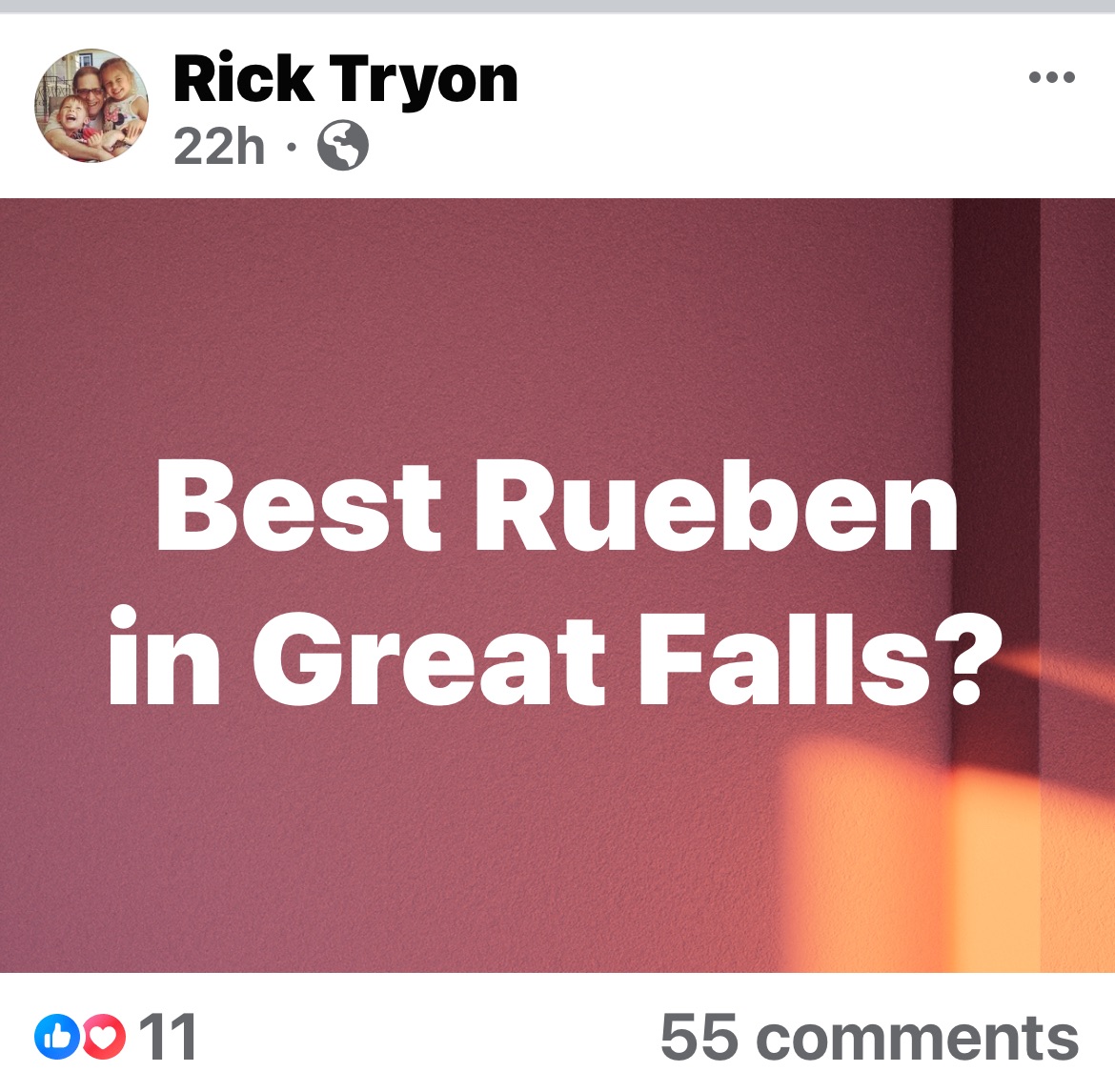 - Great Falls City Commissioner Rick Tryon is asking Facebook friends to help him find the best “RUEBEN” in Great Falls and not one person in the comments had guts enough to tell him he was spelling “Reuben” incorrectly. (Source)