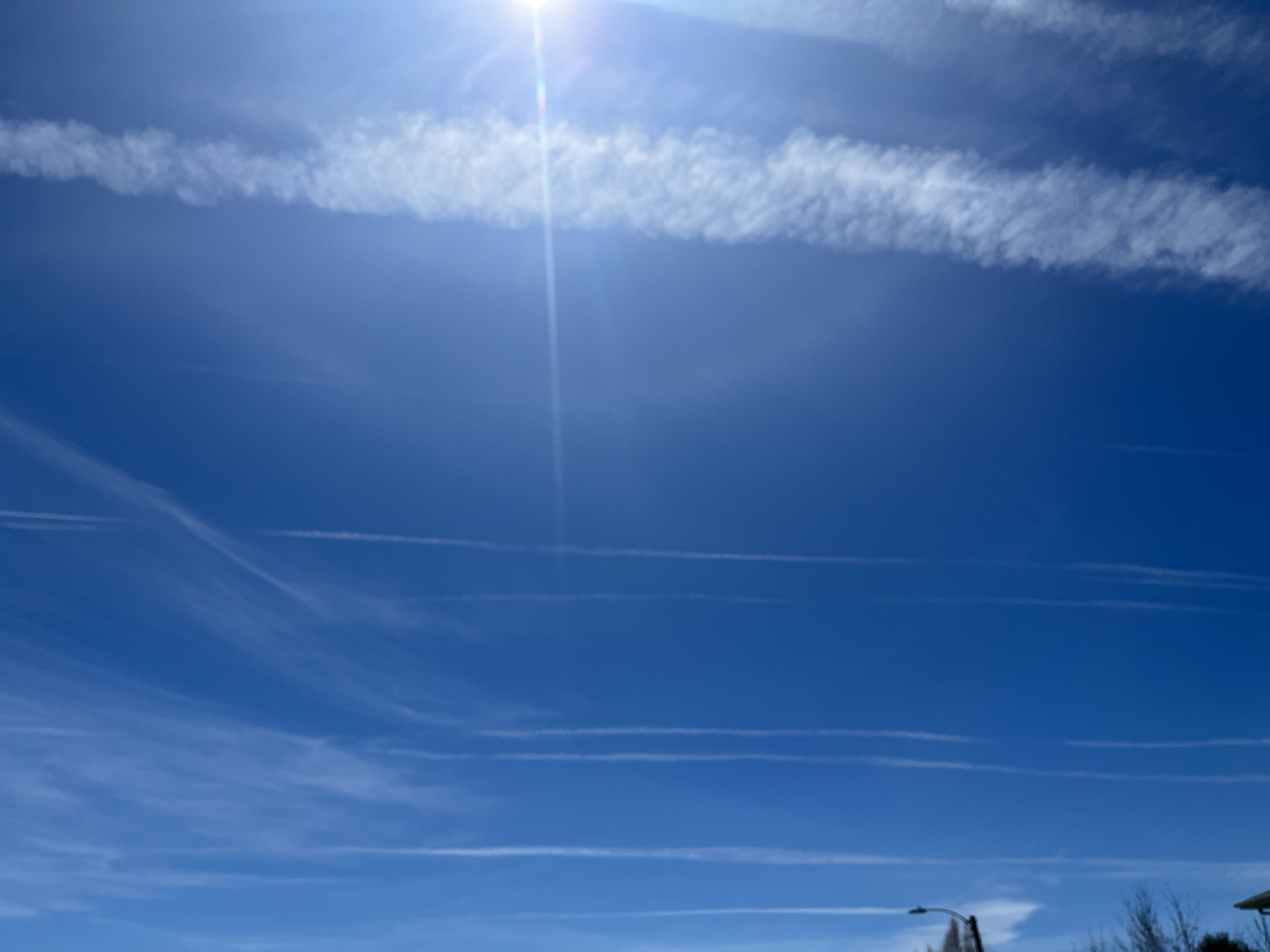 The first photo shows the chemtrails/contrails being sprayed over Great Falls Friday. Of course, some believe this is a conspiracy, but do we really know? 😉