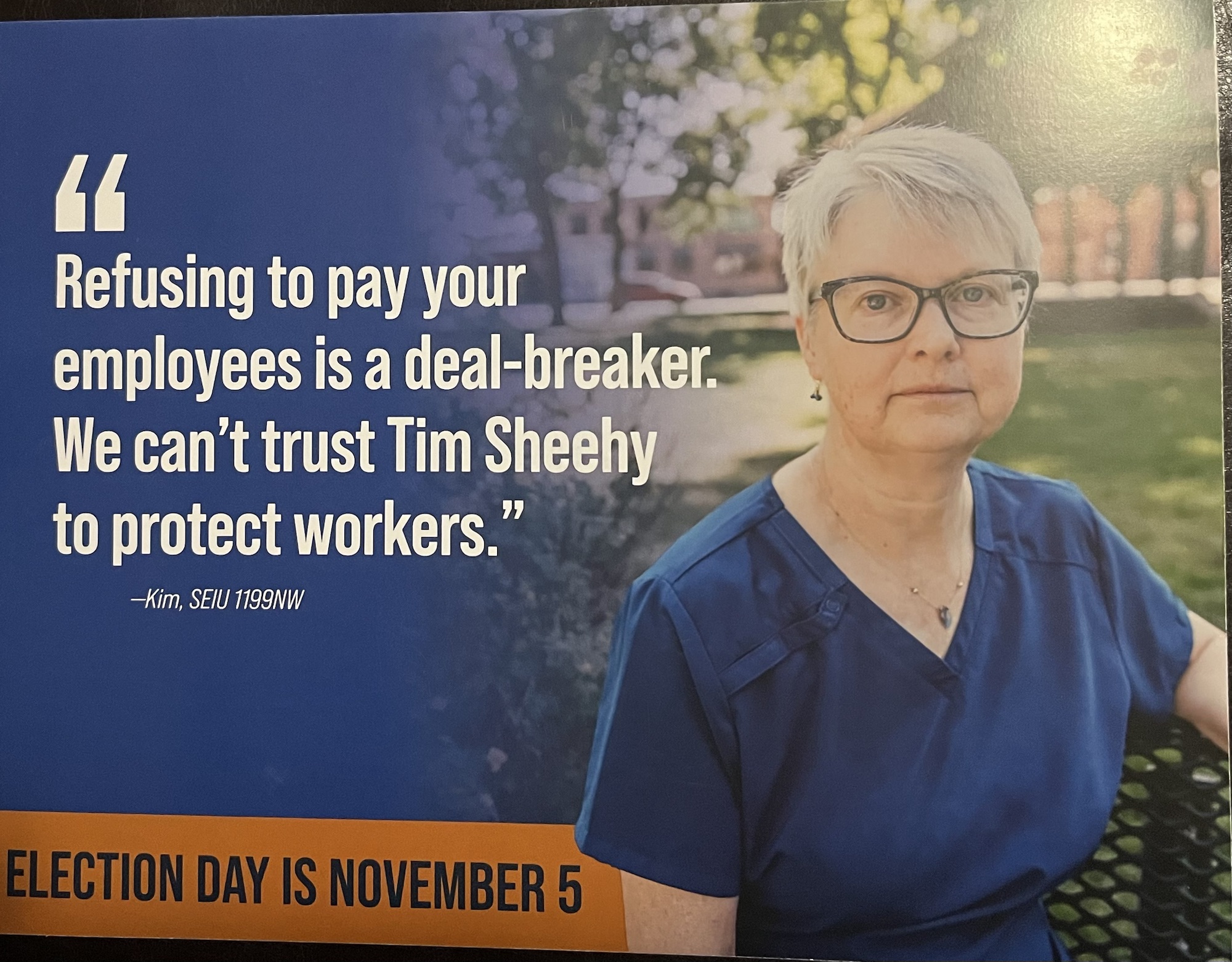 The Montana AFL-CIO sent a flier to union members about not being able to trust Tim Sheehy to protect workers.