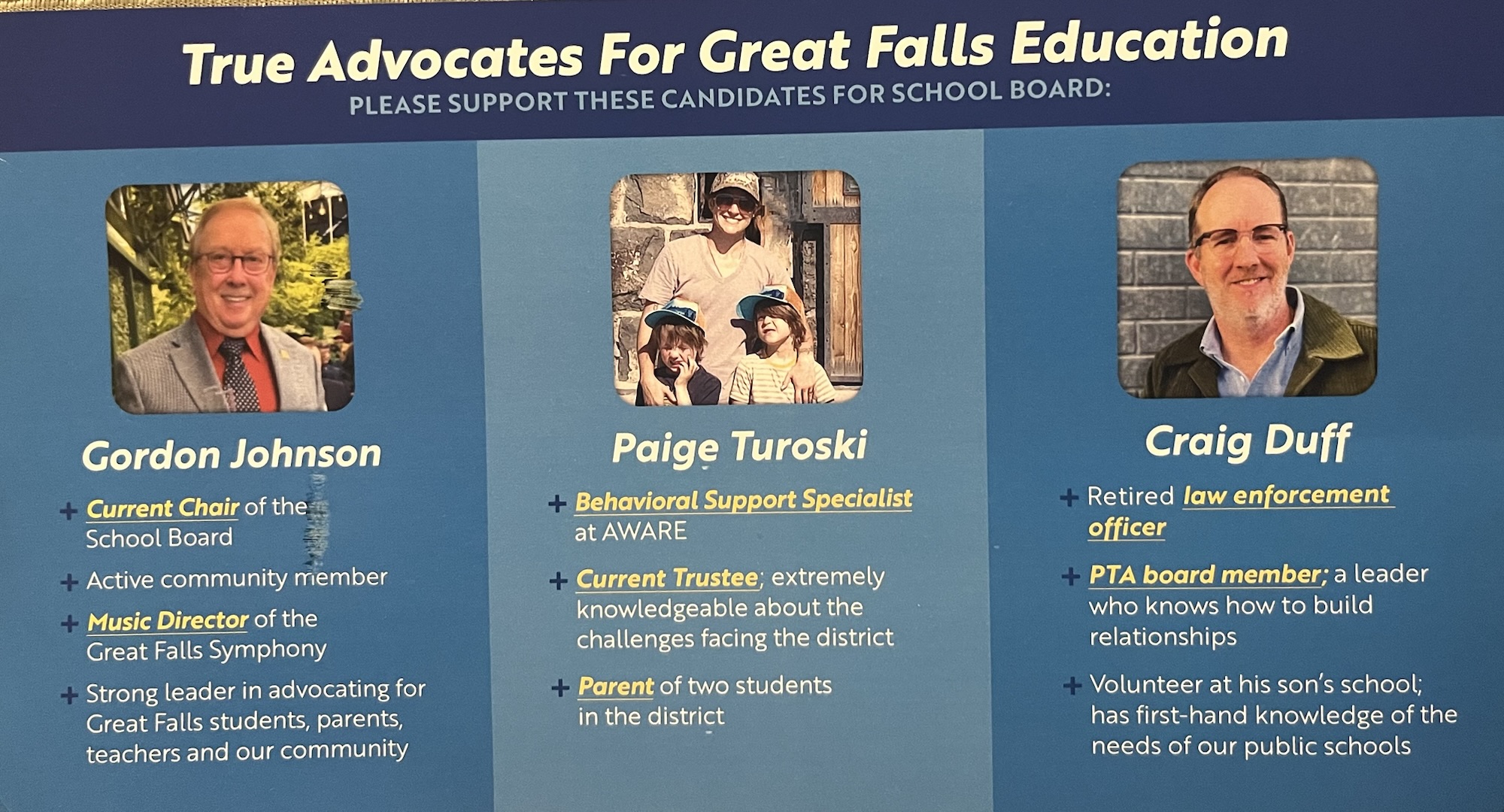 As I reported yesterday, I received my ballot for the Great Falls School Board election that is being held on May 6.
