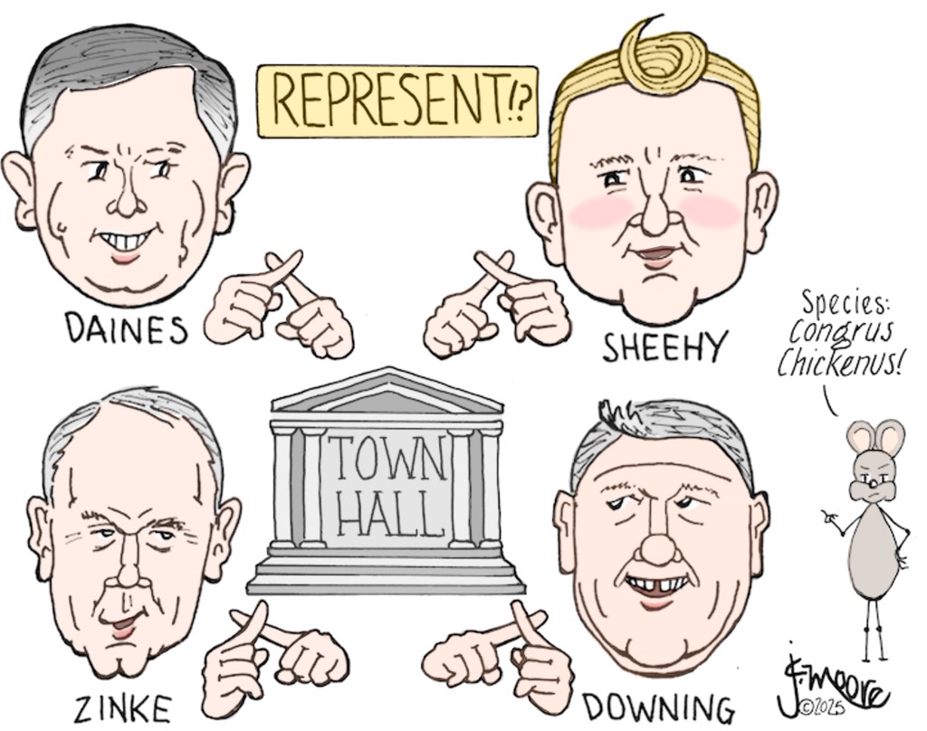 Although Montana’s current U.S. Senators, Steve Daines and Tim Sheehy, are too chicken to host in-person town hall meetings, Montana’s former U.S. Senator, Jon Tester, is joining U.S. Senator Michael Bennet (D-CO) for a town hall meeting at the University of Denver on Wednesday.