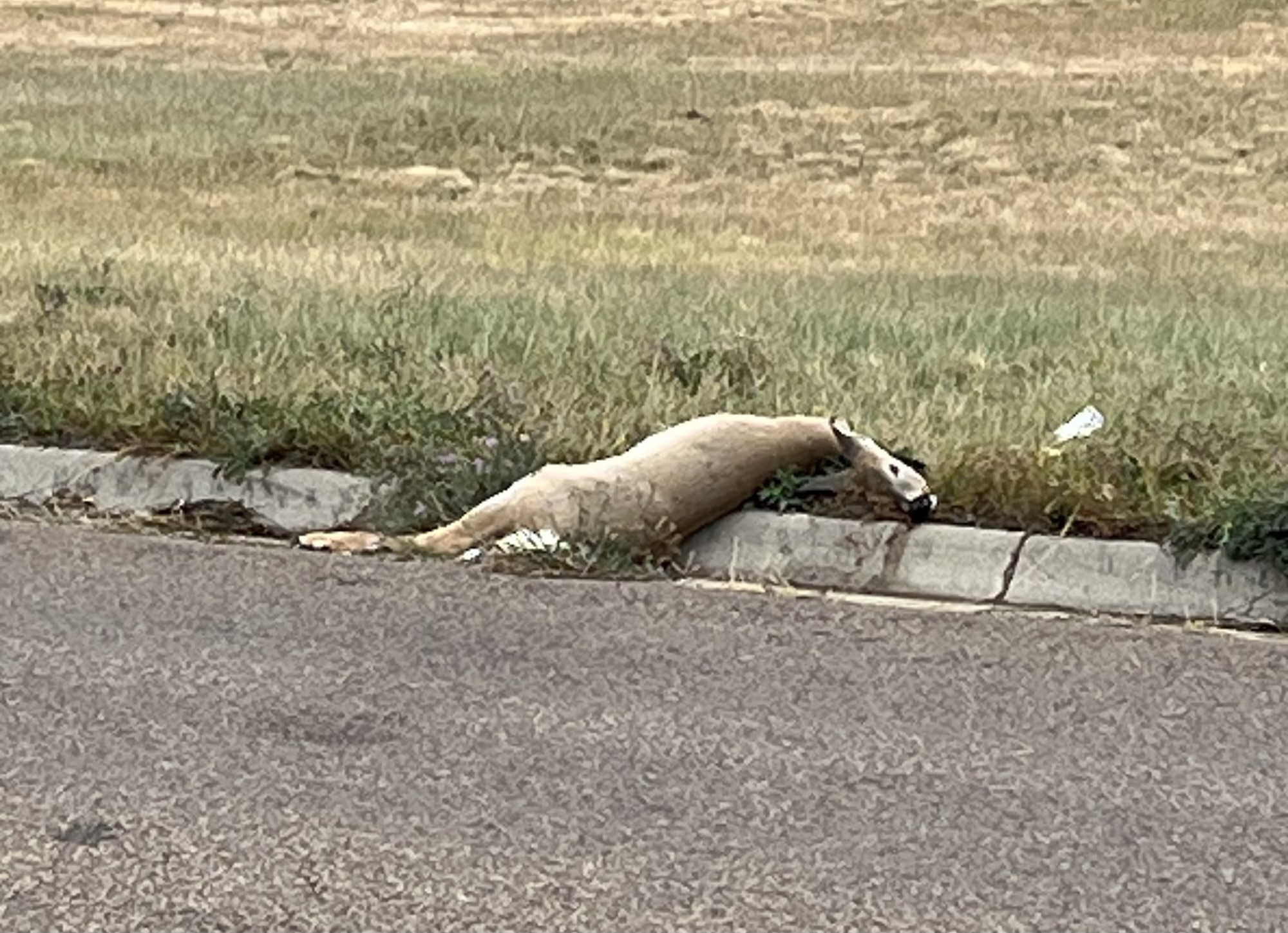 This is an ongoing report about a dead deer on a city street in Great Falls.