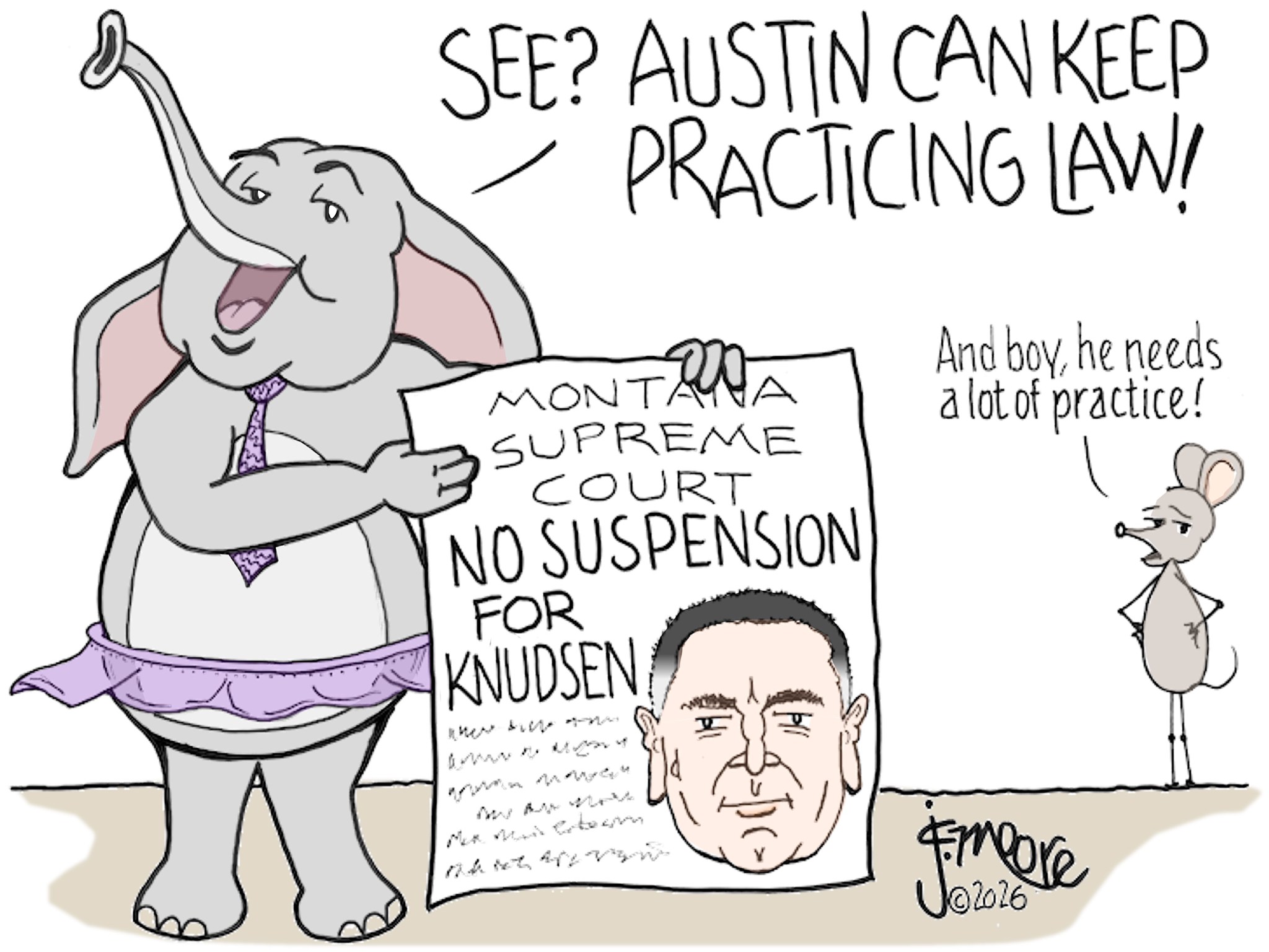 Justices agreed in their ruling that Knudsen had violated the rules of professional conduct for attorneys. But the court said the panel that handled the case violated Knudsen’s due process rights by excluding his expert witness and failing to adequately explain its decision against him. (Source)